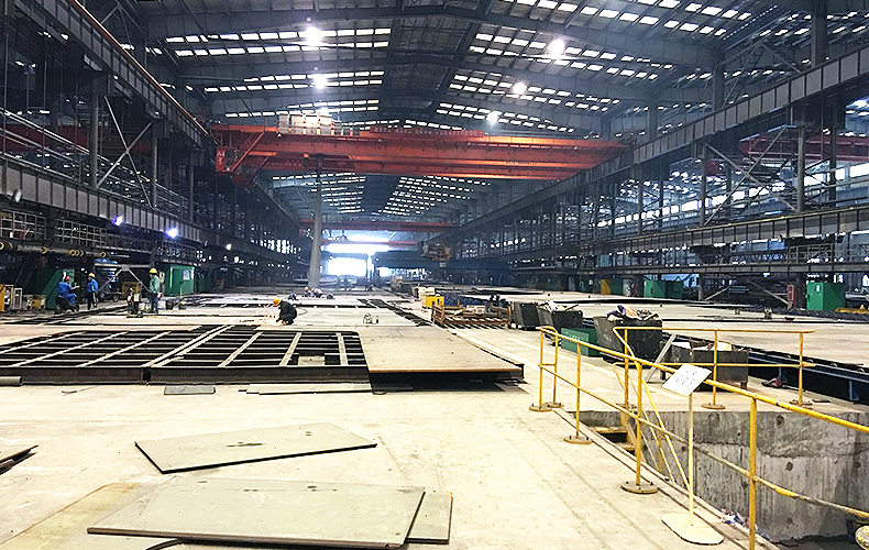 工藝示意圖“UFB法”是為了便于在設計圖標注及交流溝通過程中表述簡潔而采用的一個符號,名詞含義:U肋焊接采用陶質襯墊雙絲埋弧單面焊雙面成型的全熔透焊接工藝。字符含義:U:U型縱肋,F:焊劑(代指埋弧焊),B:襯墊。具體描述:先在組裝完成的板單元U肋內側安裝陶質襯墊,然后將板單元放置在亞船形位置的焊接工位,在U肋外側采用雙絲埋弧焊實現單面焊雙面一次成型,連接接頭全熔透,焊縫正